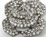 Brooch is silvertone with clear rhinestones. Brooch is in excellent condition - there appears to be missing stones at some of the creases in the rose, but this may actually be deliberate. Please see all photos