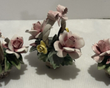 - Vintage 3pc Porcelain Capodimonte Flower Floral Pink/ Basket with Bow