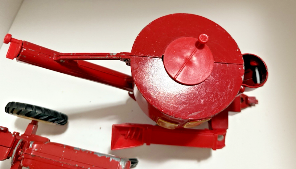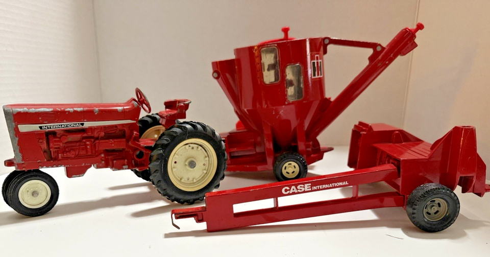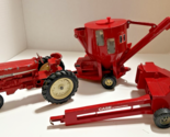 - Vintage 3pc Red Farm Tractor ERTL Co International Die Cast Metal Toy USA