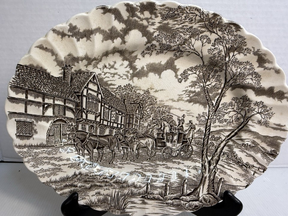 hand-painted estate with a horse and buggy pattern in multi-color. The