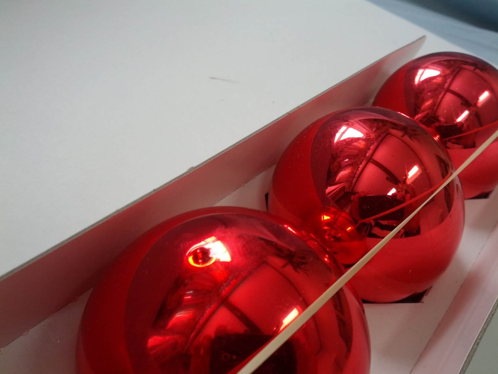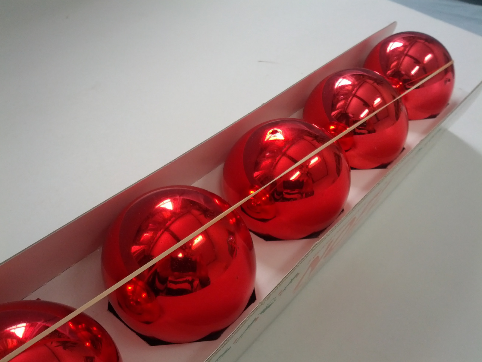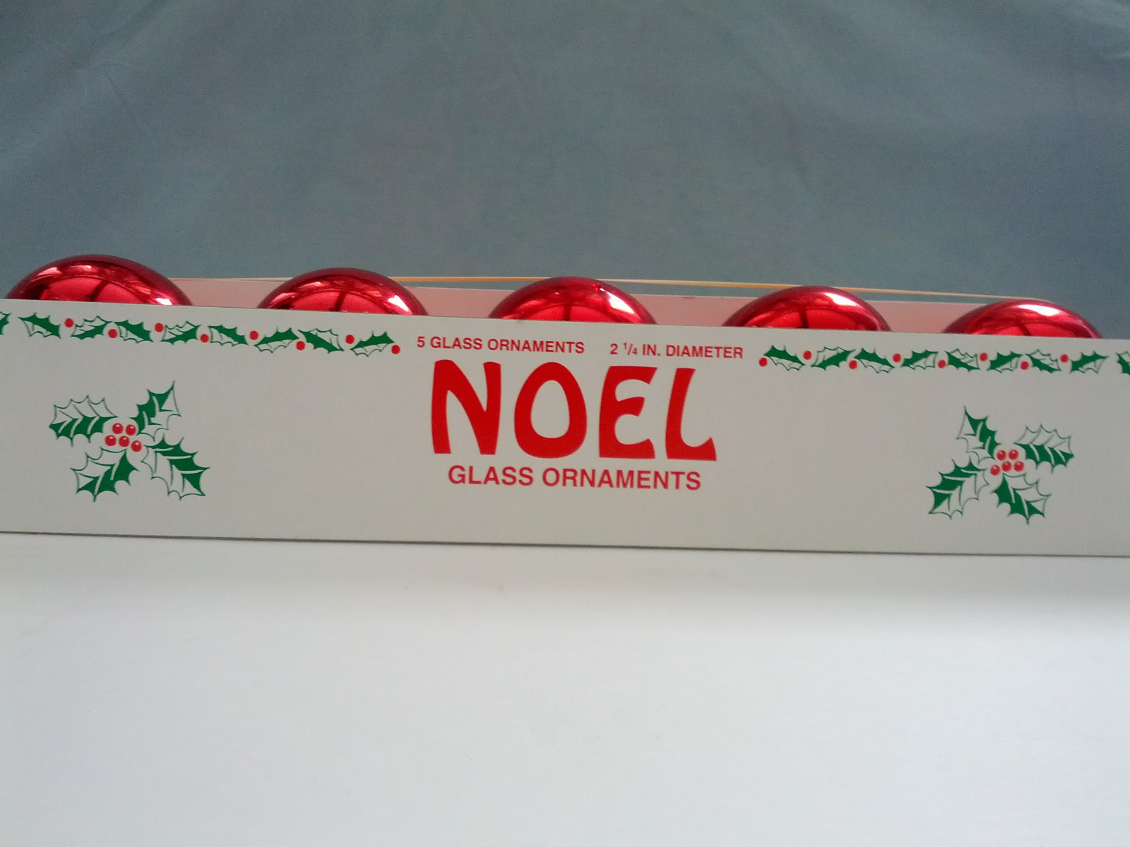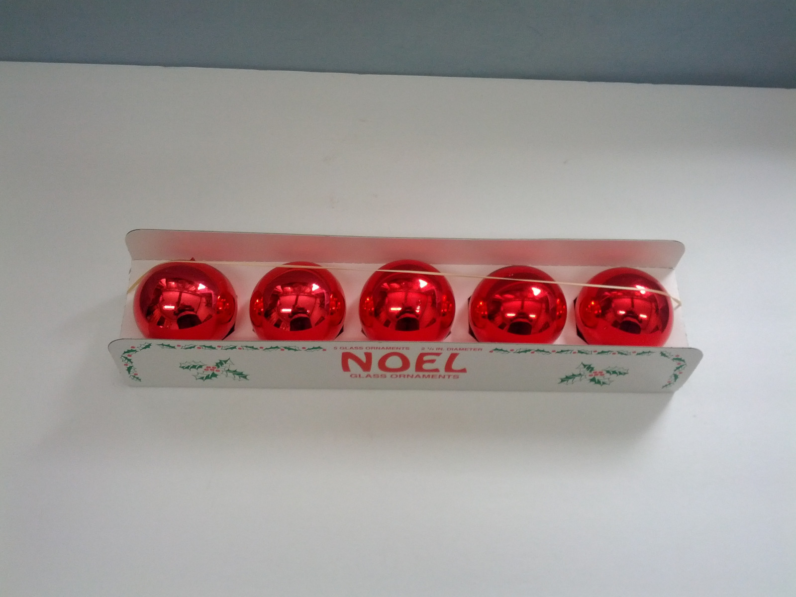 - Vintage 5 round red glass mercury Christmas ornaments NOEL made in USA