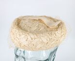 - Vintage 50s Womens Bowtie Fishnet Lace Straw Pillbox Hat Cap Beige USA
