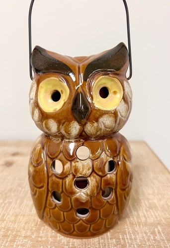 - Vintage 6” Ceramic Owl VOTIVE CANDLE LANTERN - MCM HANG OR STAND 70s