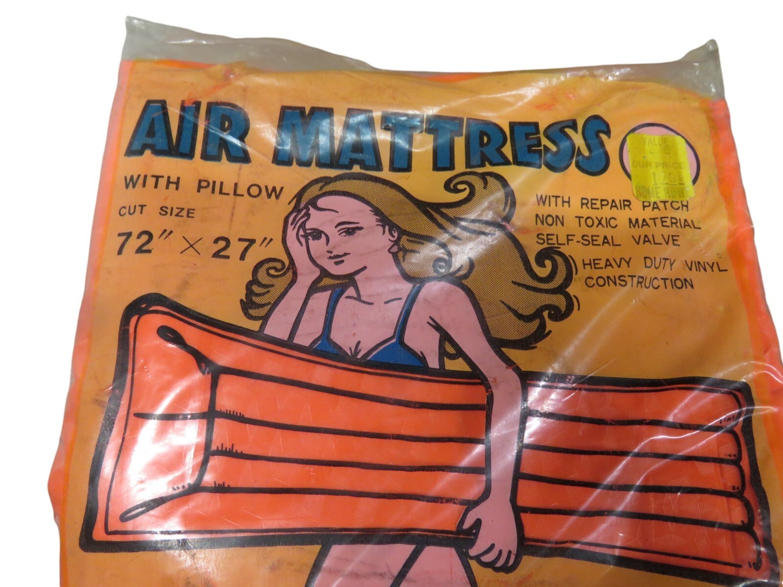 - Vintage 60’s / 70’s Orange Heavy Duty Vinyl Air Mattress with Pillow Pool Float