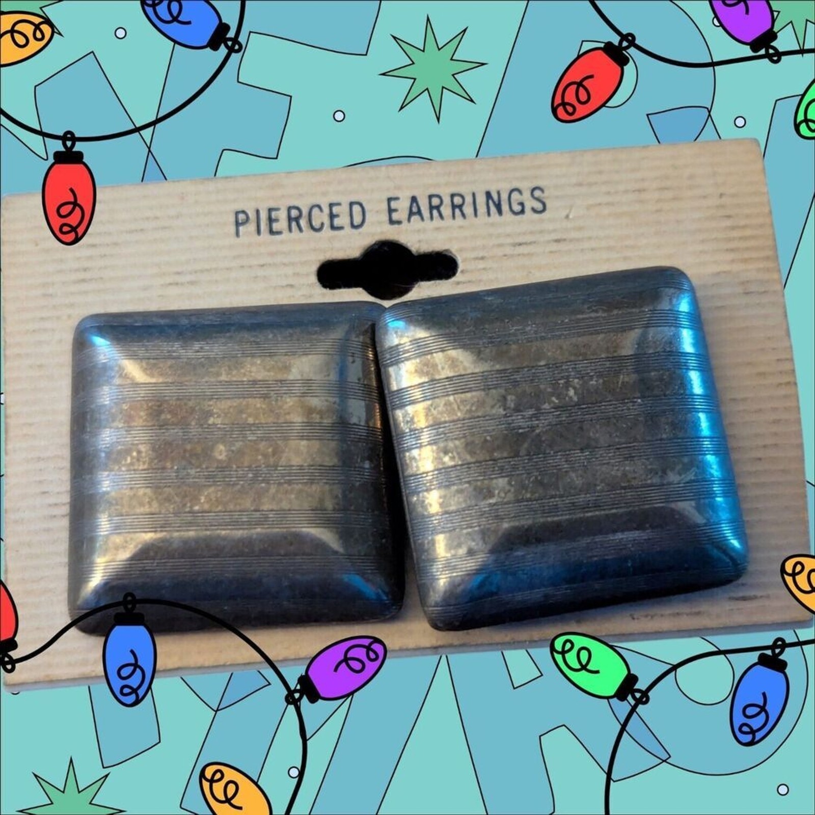- Vintage 60s 70s Lined Square Stud Gray Matte Pierced Stud 1” Silver Mid Century