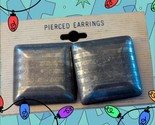 Vintage 60s 70s Lined Square Stud Gray Matte Pierced Stud 1” Silver Mid Century