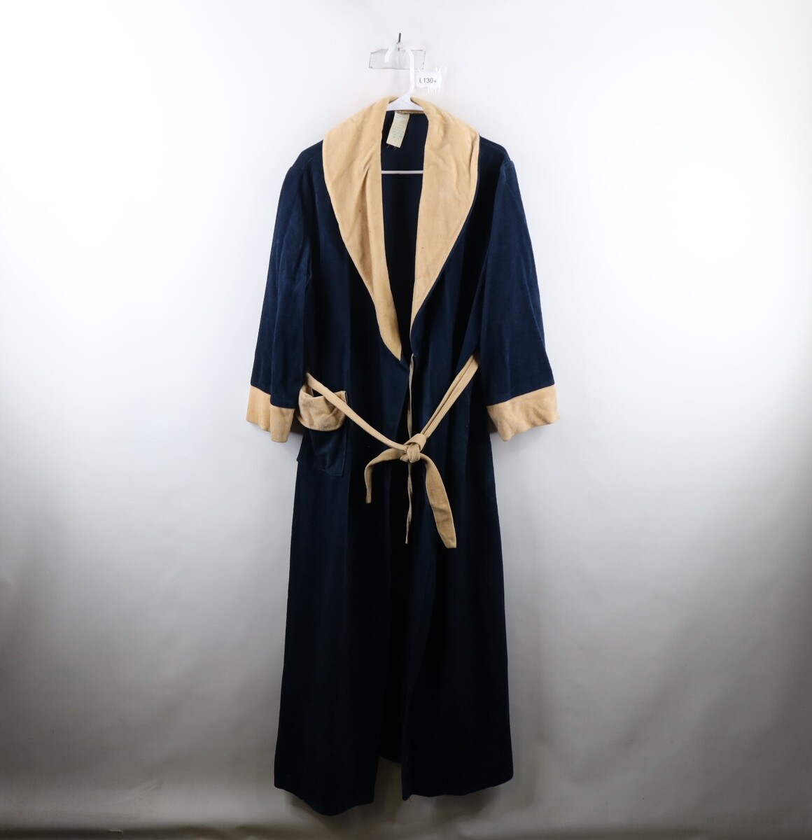- Vintage 60s 70s Rockabilly Mens Large Distressed Velour Belted Bath Robe USA