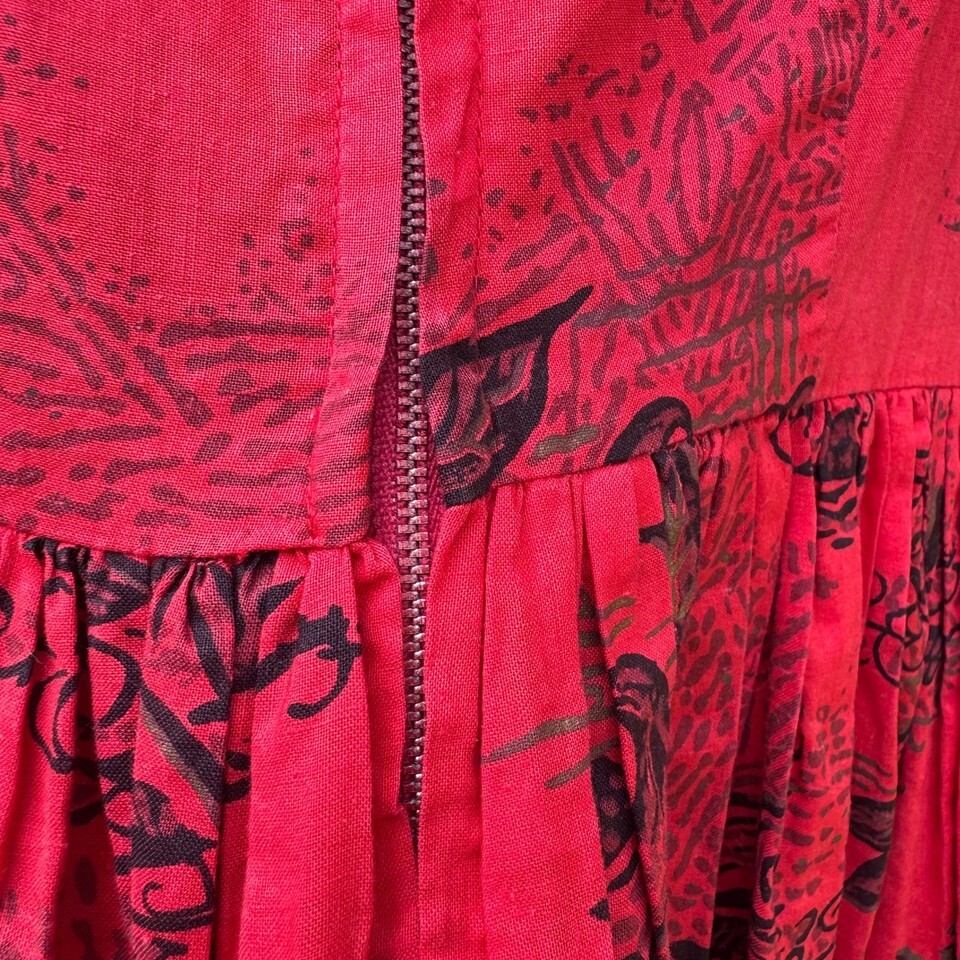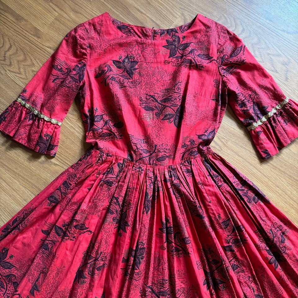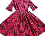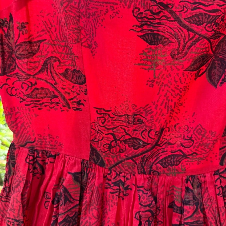 Vintage Fit Flare Red Hawaiian Print Dress Size XS 34-24-free MCM Rockabilly