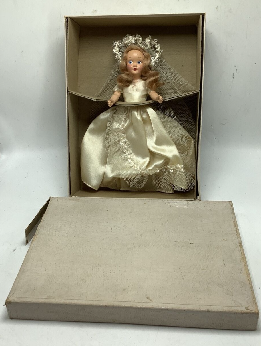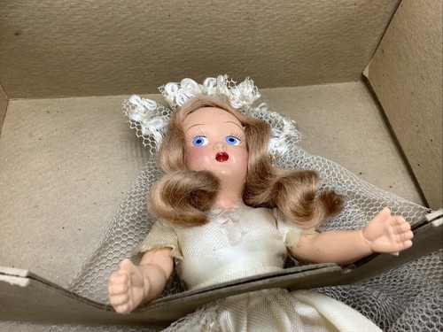 - Vintage '60s Hard Plastic Dime Doll Bride Excellent Condition New In Box 1960s
