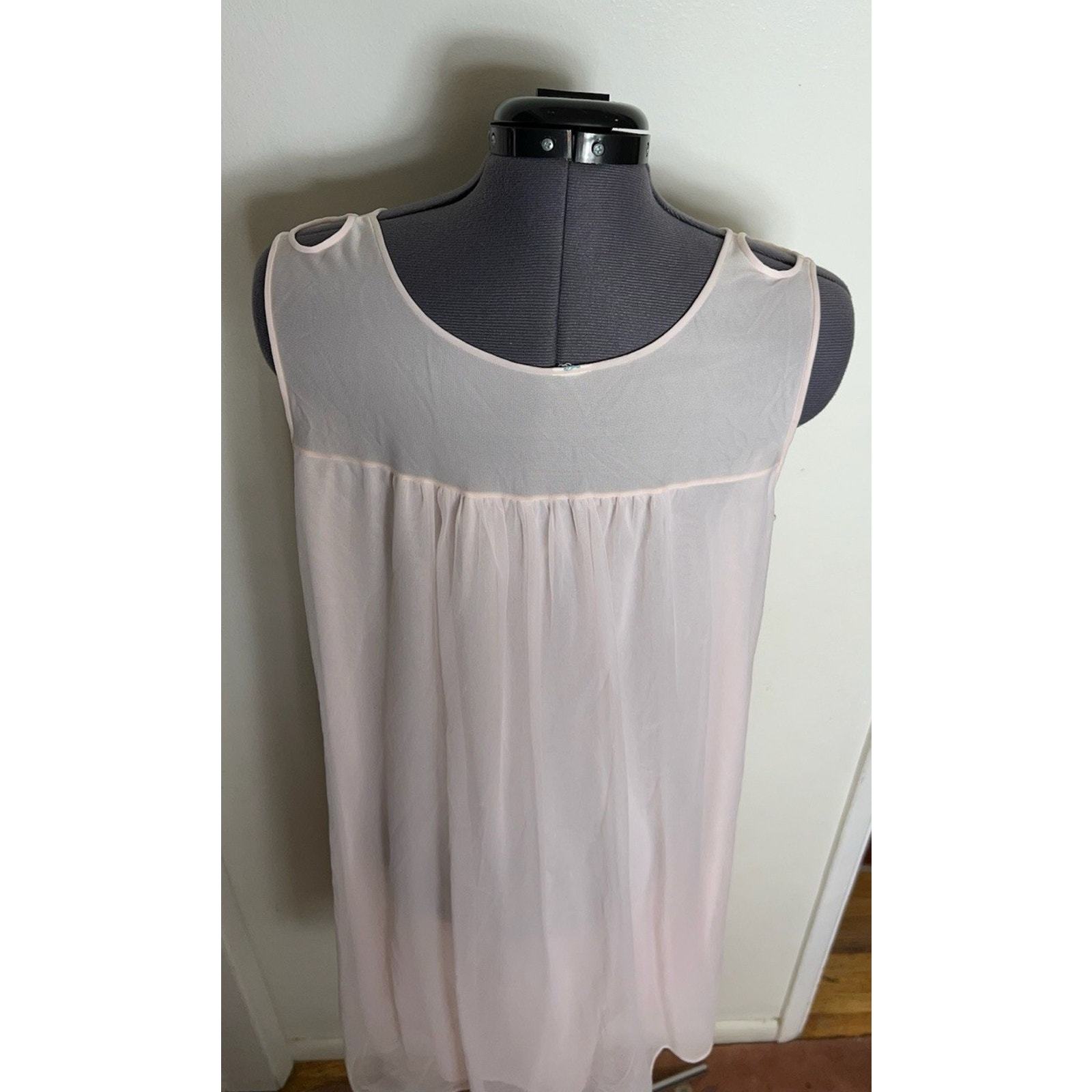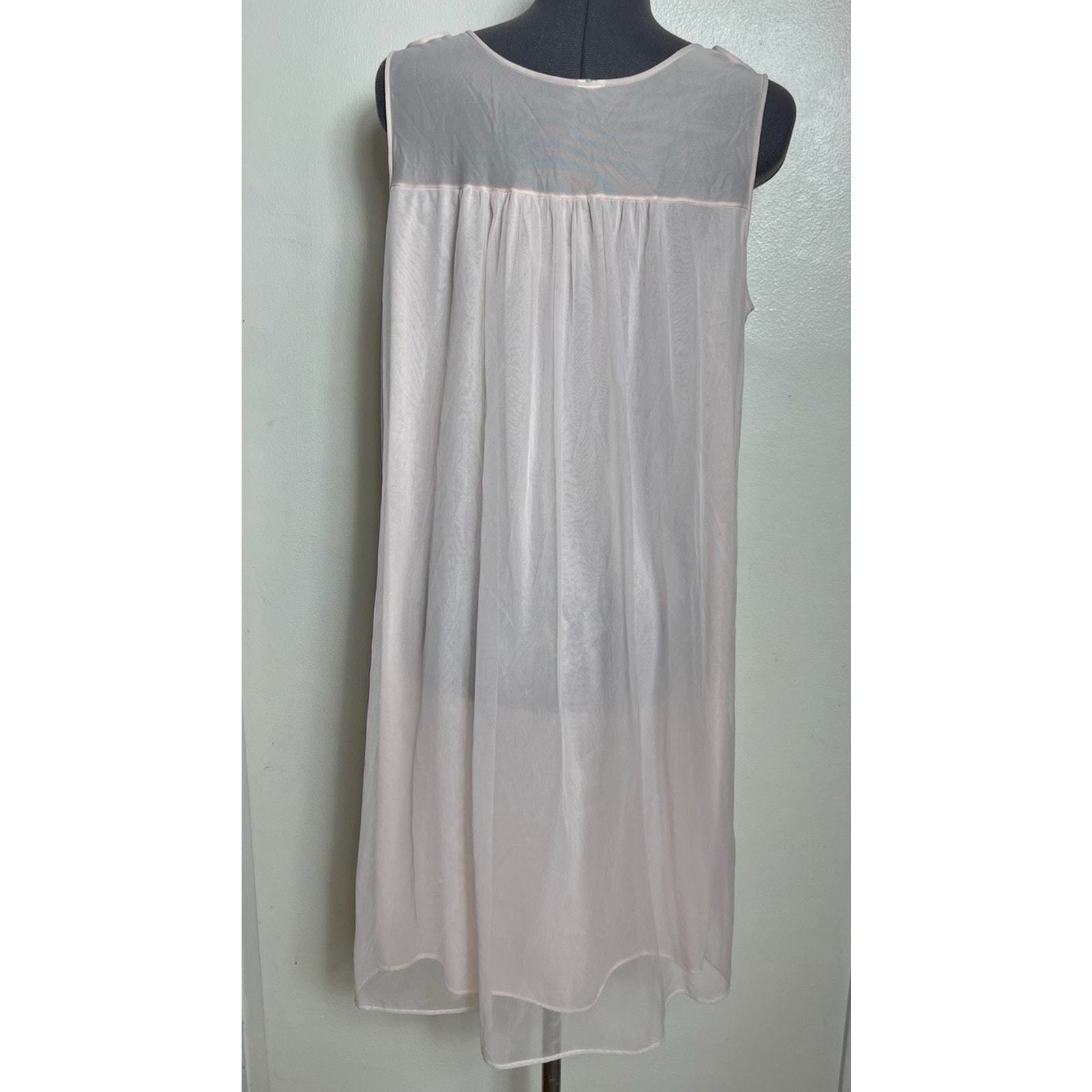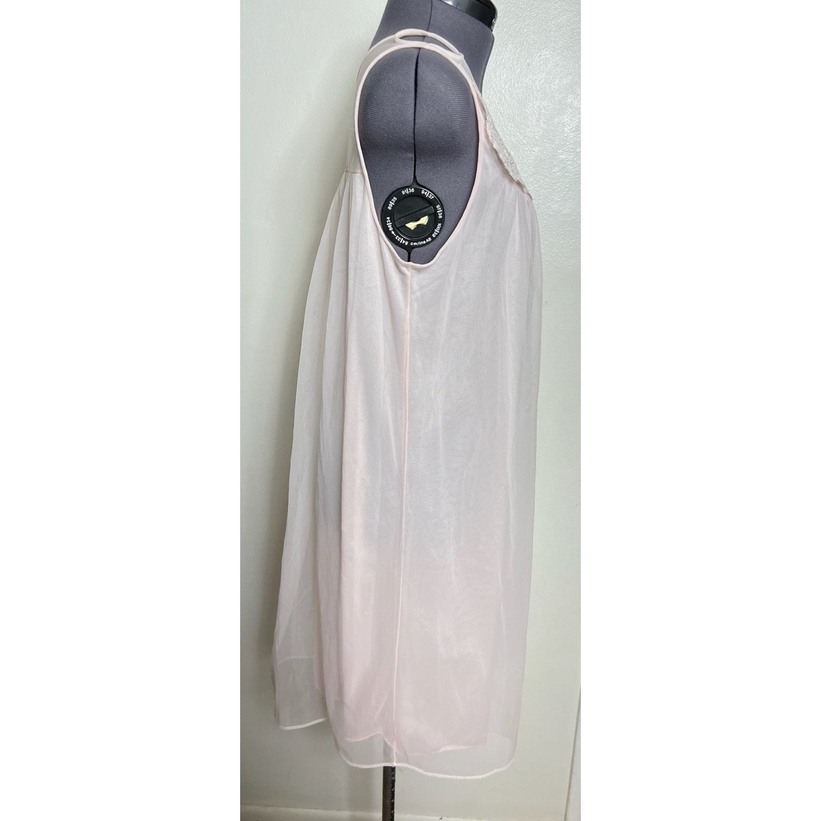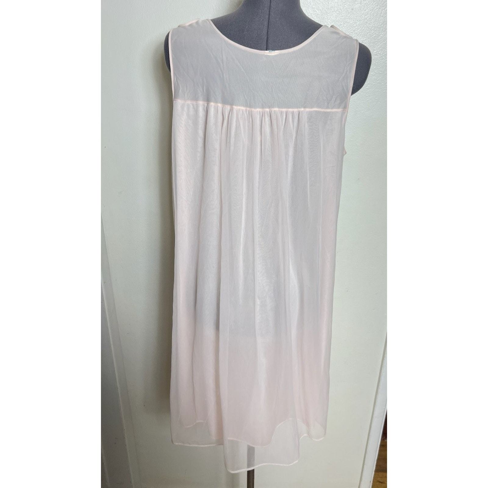 - Vintage 60s Pink Nylon Chiffon Nightgown Lace Sheath Slip Lingerie Dress Sz L