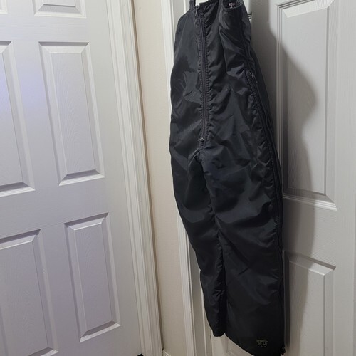 Excellent Condition Vintage 70s Arctic Cat Arcticwear Black Insulated Waterproof Bib Overalls - Made in USA. Men's Large. Actual measurements: 46" chest, 30" inseam, 49" full length from shoulder to bottom hem + 13+ inches for adjustable shoulder straps. They fully unzip down both legs.