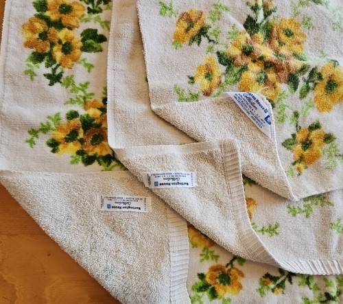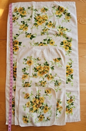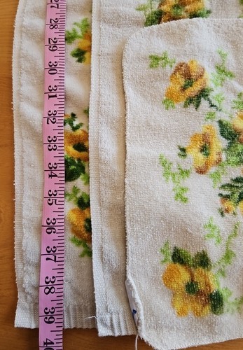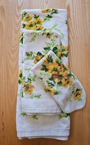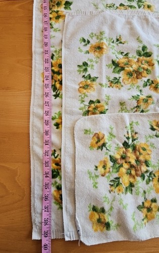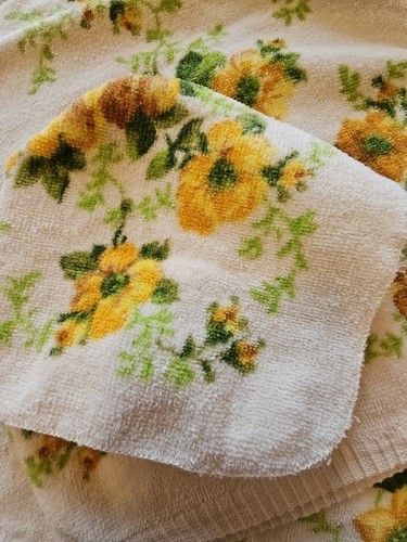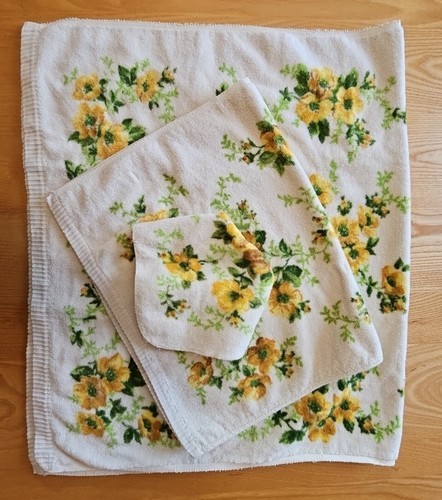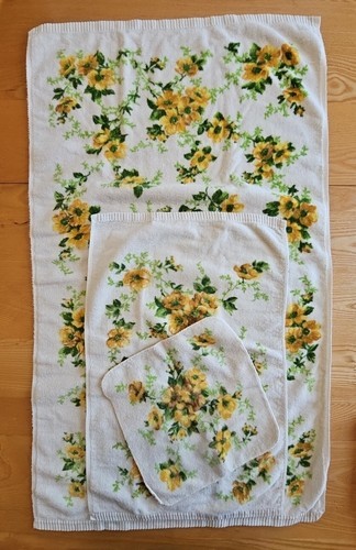 - Vintage 70s Burlington House Collection 3 pc Towel Set Floral Yellow Cotton