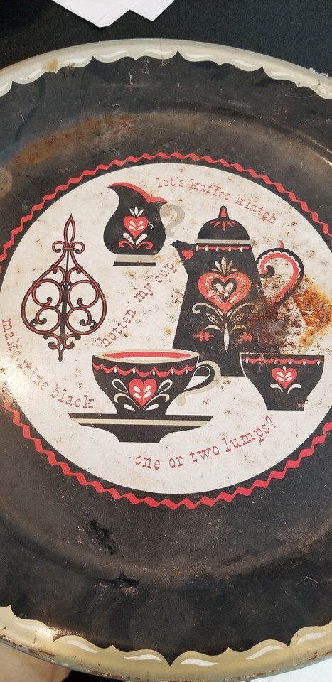 - Vintage 70s German "Kaffee Klatch" Coffee Red Black Large Metal Serving Tray 19"