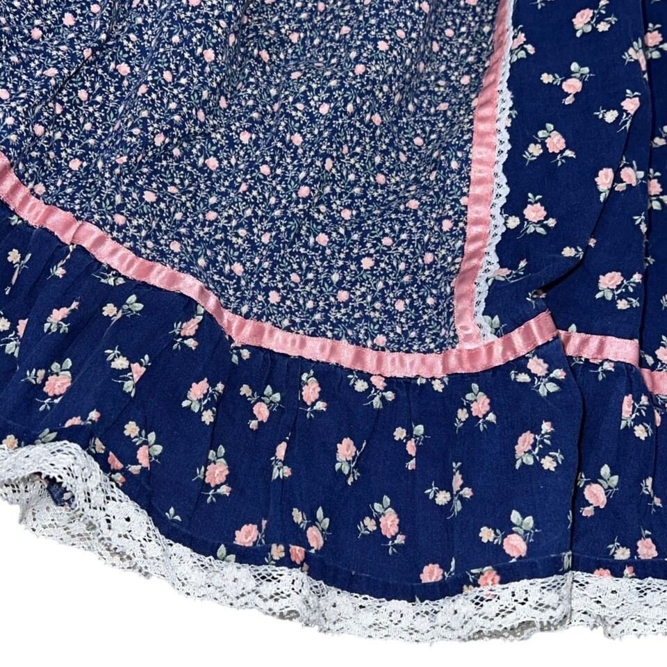 - Vintage 70s Gunne Sax Style Girls Prairie Skirt Satin Lace Trim Floral Pattern