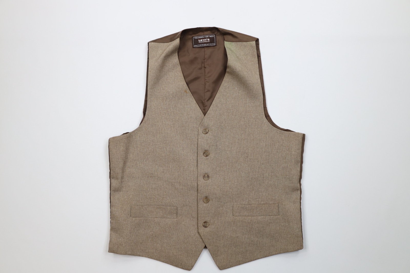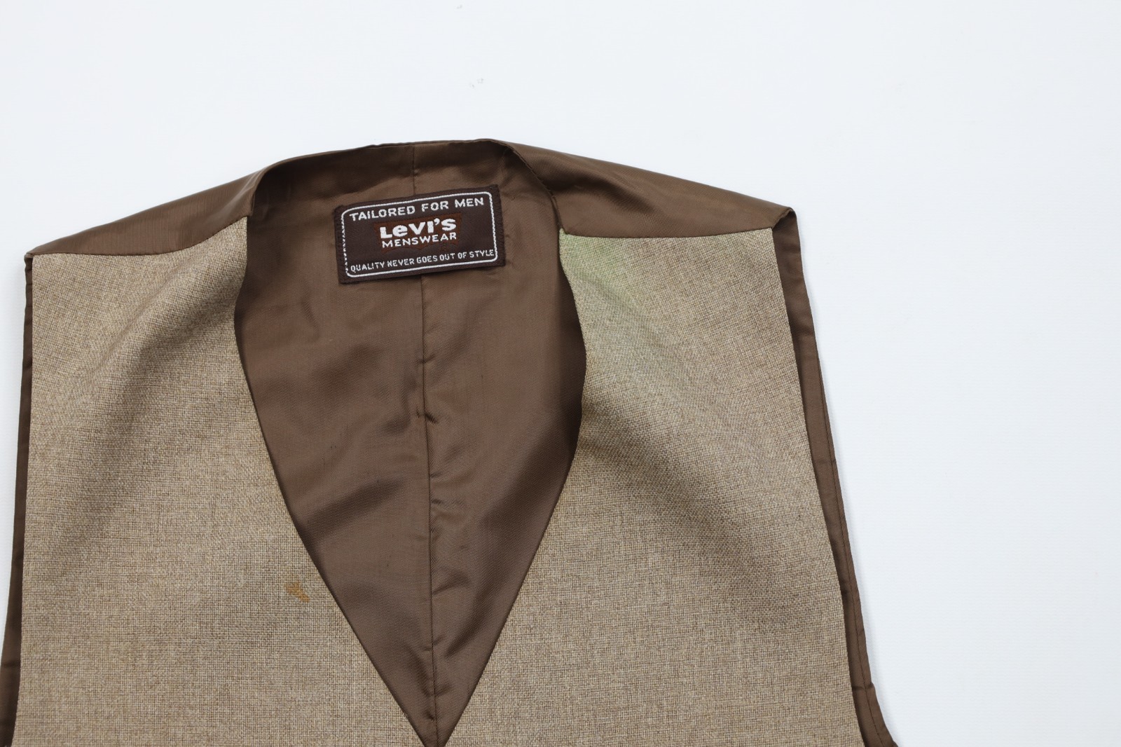 - Vintage 70s Levis Mens 44R Distressed 3 Piece Knit Wedding Suit Bell Bottoms USA