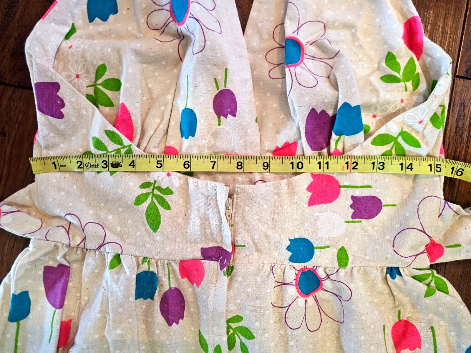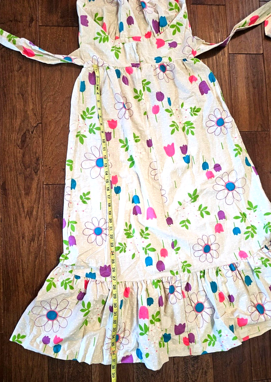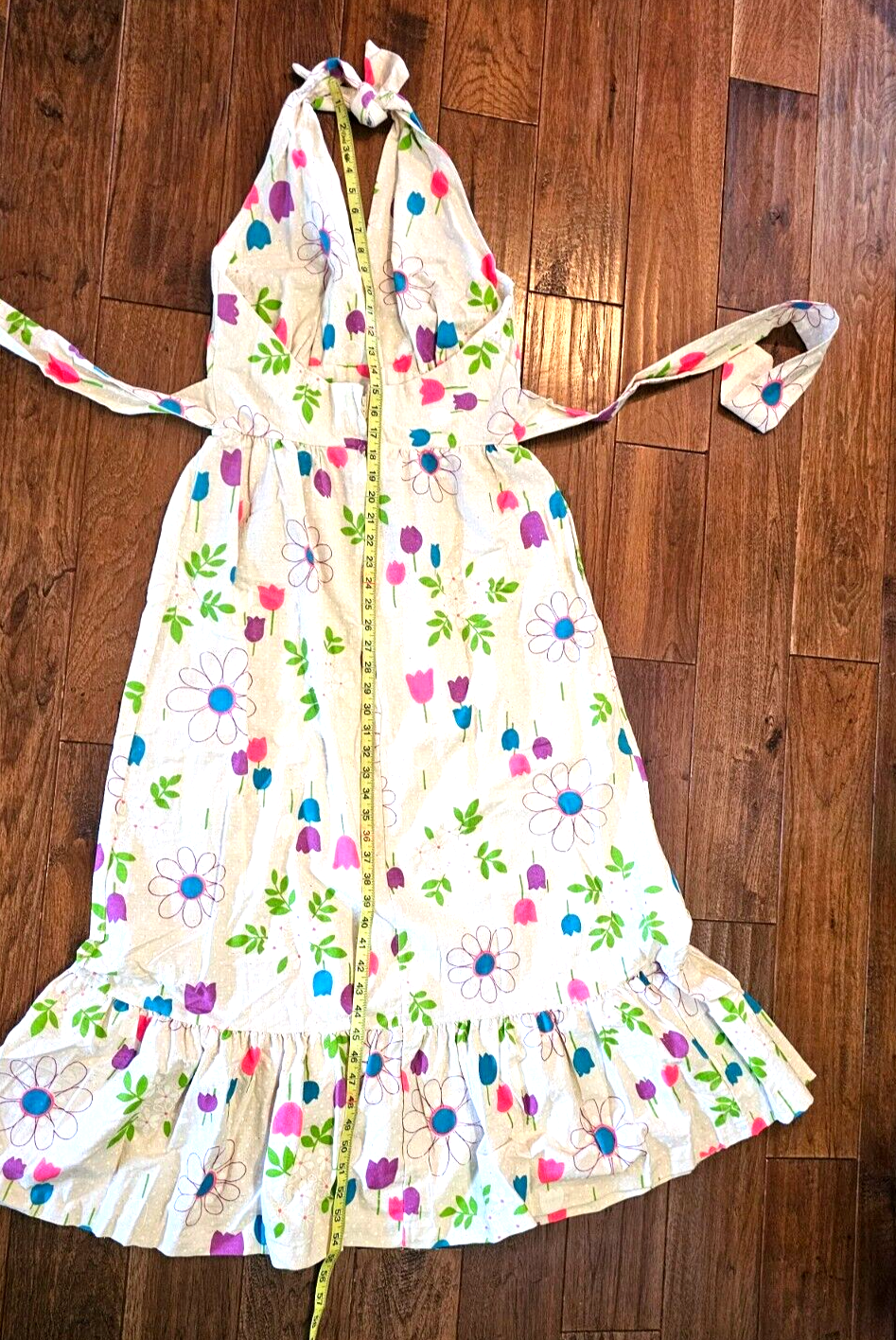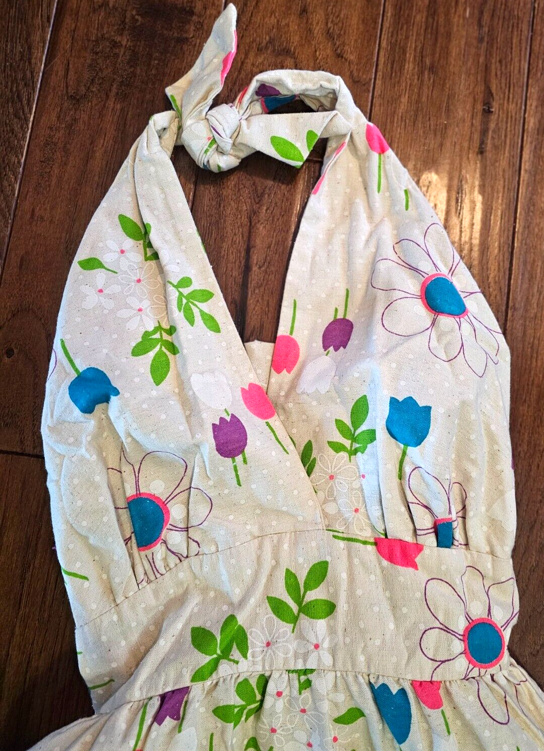 Vintage 70s Handmade Maxi Dress Small Floral Print Halter Neck Pink Orange Blue