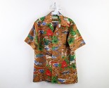 Vintage 70s Mens Size Large Flower Surfing All Over Print Hawaiian Button Shirt