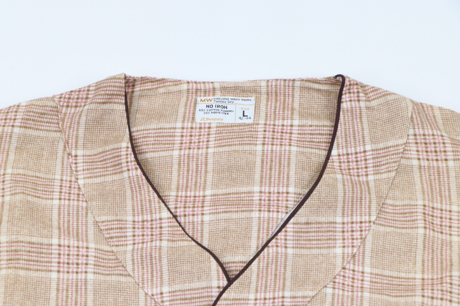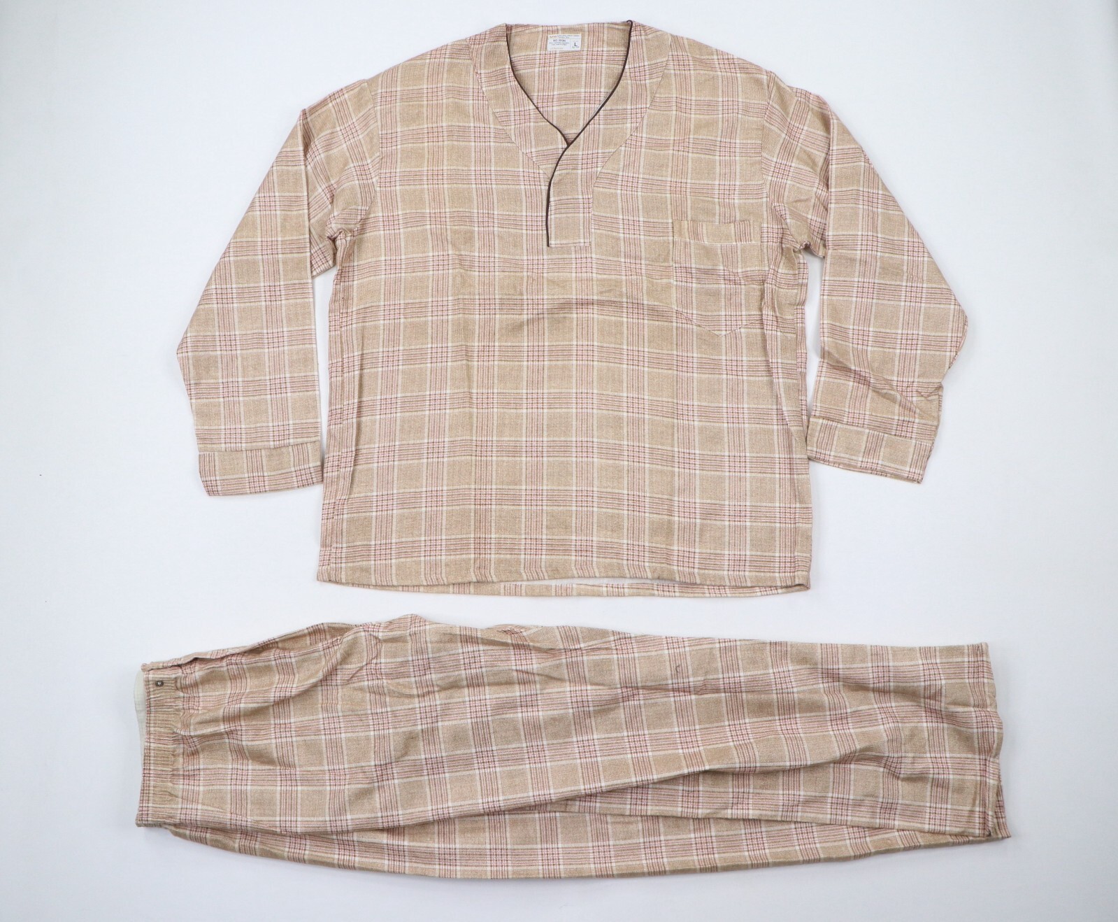 - Vintage 70s Streetwear Mens Large Checkered Plaid Flannel Pajamas Set Outfit USA