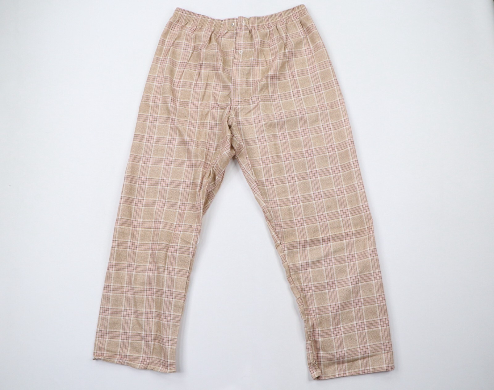 Vintage 70s Streetwear Mens Large Checkered Plaid Flannel Pajamas Set Outfit USA