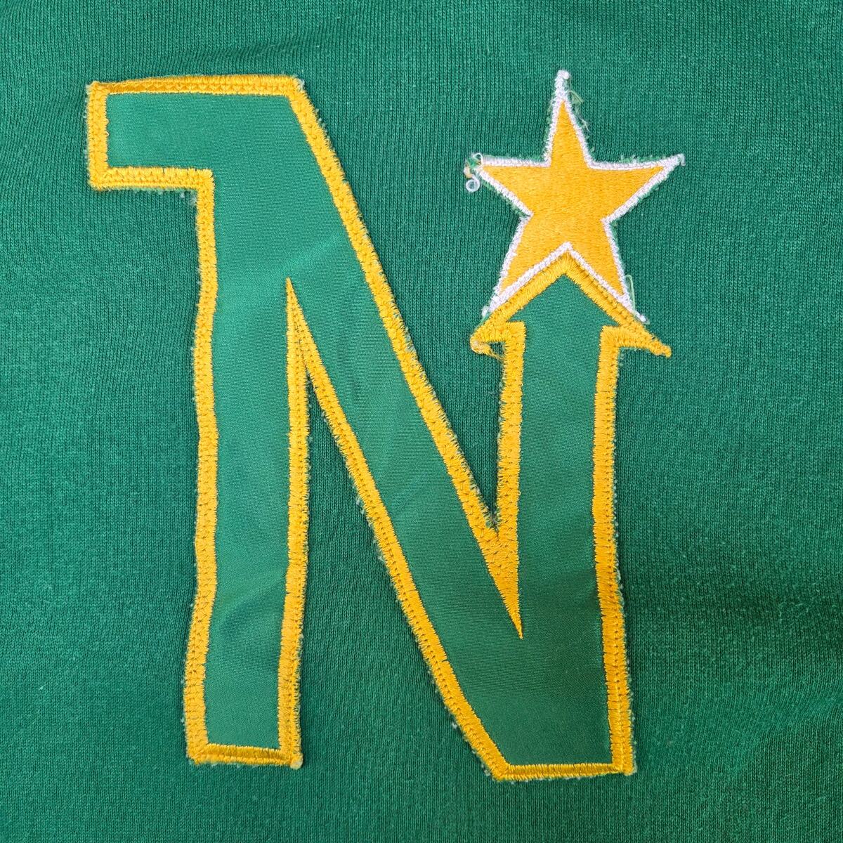 Authentic vintage 1980s Russell Athletic Minnesota North Stars crewneck sweatshirt, featuring the classic chain-stitched ?N bigstar;? logo. Made in the USA from a heavyweight cotton-blend fleece. A rare original piece from the team?s pre-1993 era. Minor loose stitching on the star embroidery but otherwise well-preserved for its age.