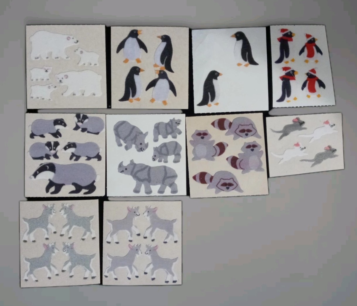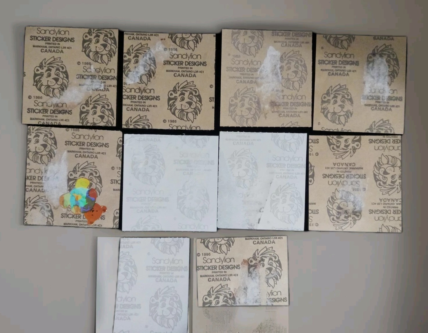 - Vintage 80s Sandylion Raccoons Badgers Rhinos Goats 10pc Fuzzy Sticker Lot