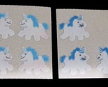 This product is a vintage 80s Sandylion 2PC blue white unicorn sticker lot