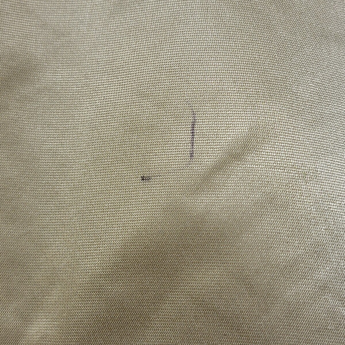 ***Patina is coming off the snap buttons. Has some lite stains / Pen marks. And there is a very small hole only thru the first layer of the "inside armpit seam" - right side. Also, has some wear on the inside right shoulder. Please See Photos!***
