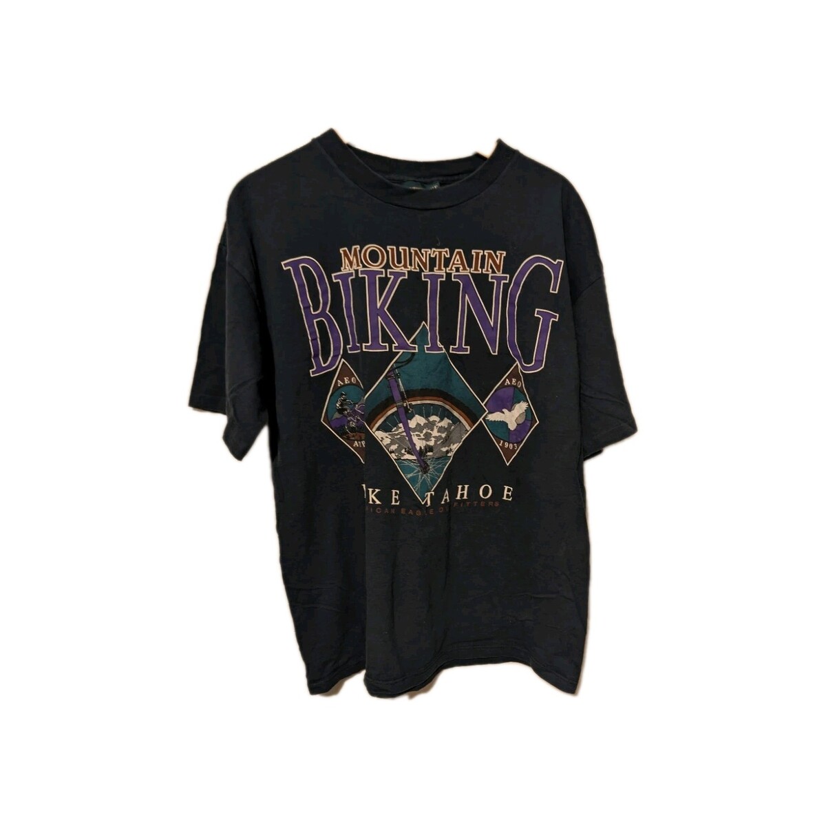 - Vintage 90s American Eagle Mountain Biking Lake Tahoe T Shirt Navy Blue XLarge