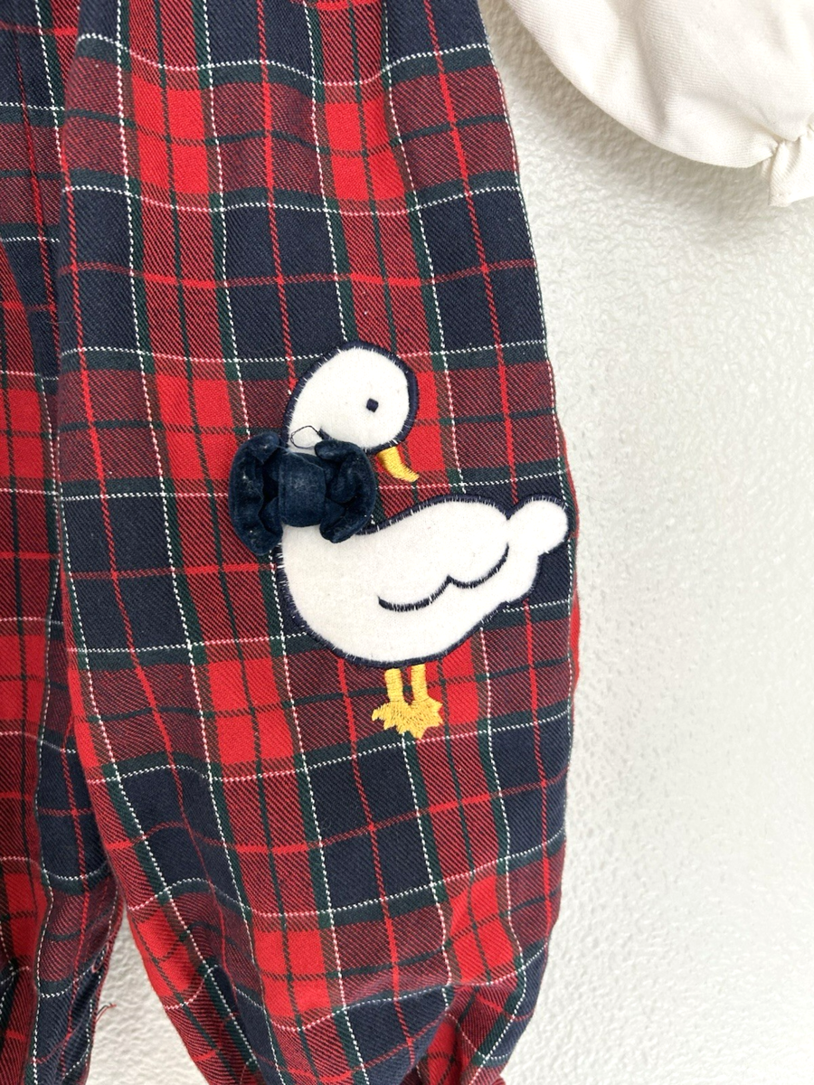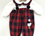 Vintage 1990's Christmas Red Black Plaid Velvet Bow Goose Romper 12- 18 Months