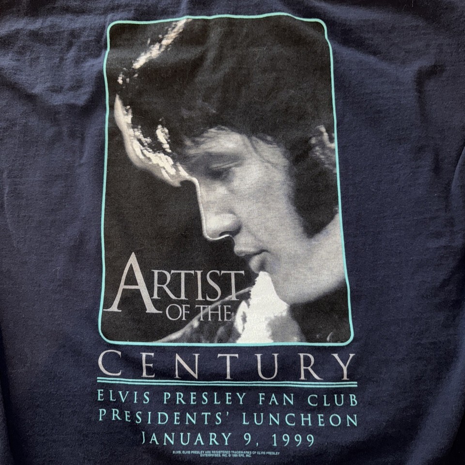 - Vintage 90s Elvis Presley Artist of the Century Navy Blue Shirt Size XL Fan Club