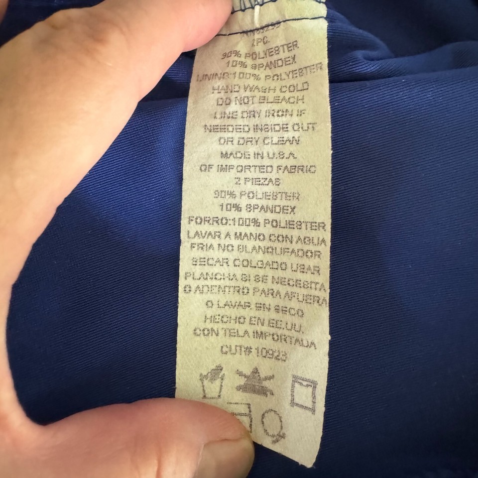 dress is pullover, has 20" back slit, spaghetti straps and has rhinetones at neck, jacket is open front and has clear rhinestone trim and padded shoulders
