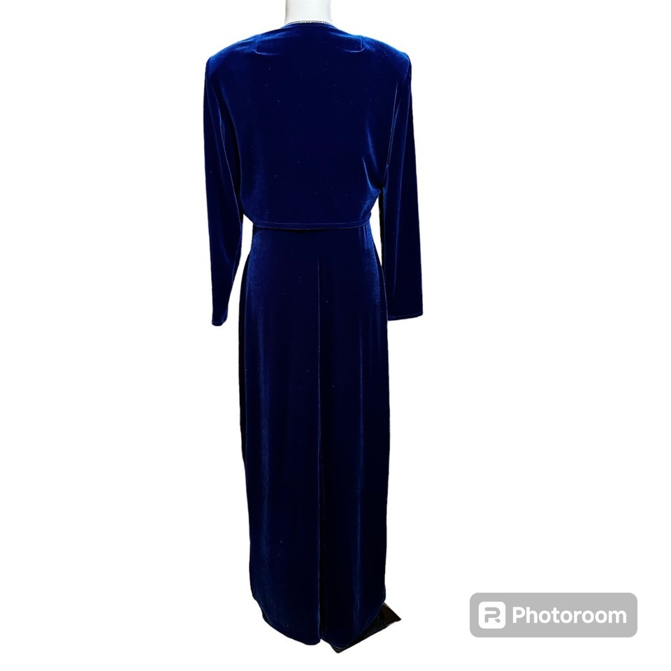 - Vintage 90s Royal Blue Velvet Maxi Dress Jacket Set Size M Rhinestones Prom