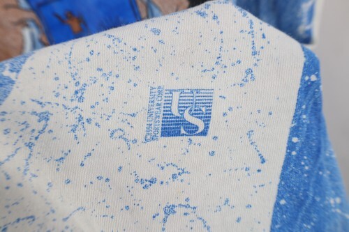 Graphics, color faded. Pilling. Made in USA