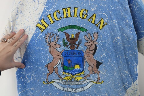- Vintage 90s Streetwear Mens Large All Over Print Michigan State Flag T-Shirt USA