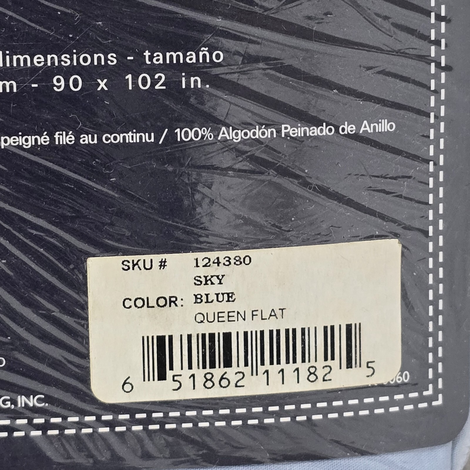 New in Package Vintage 90s Tommy Hilfiger Sky Blue Queen Flat Sheet - 100% Cotton.