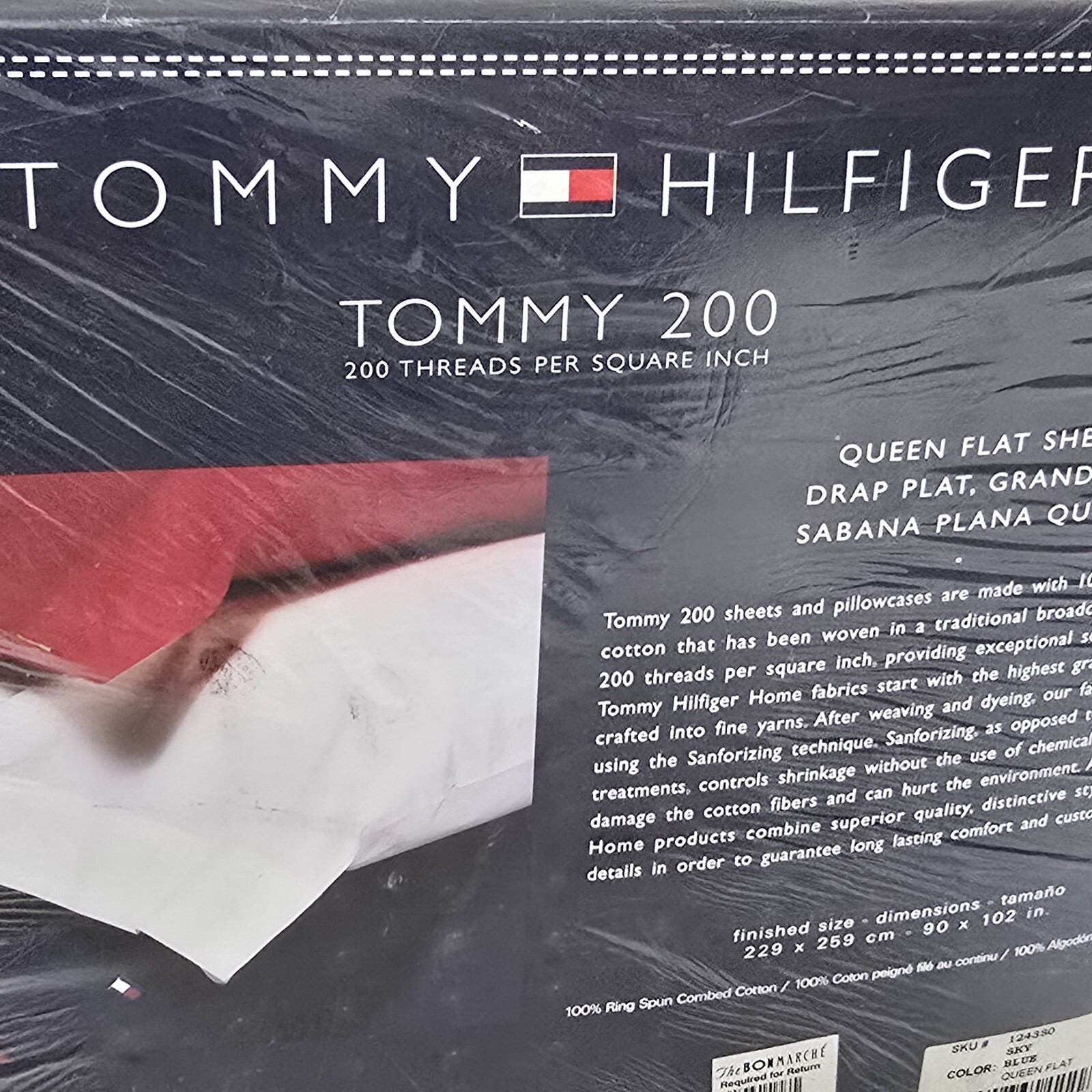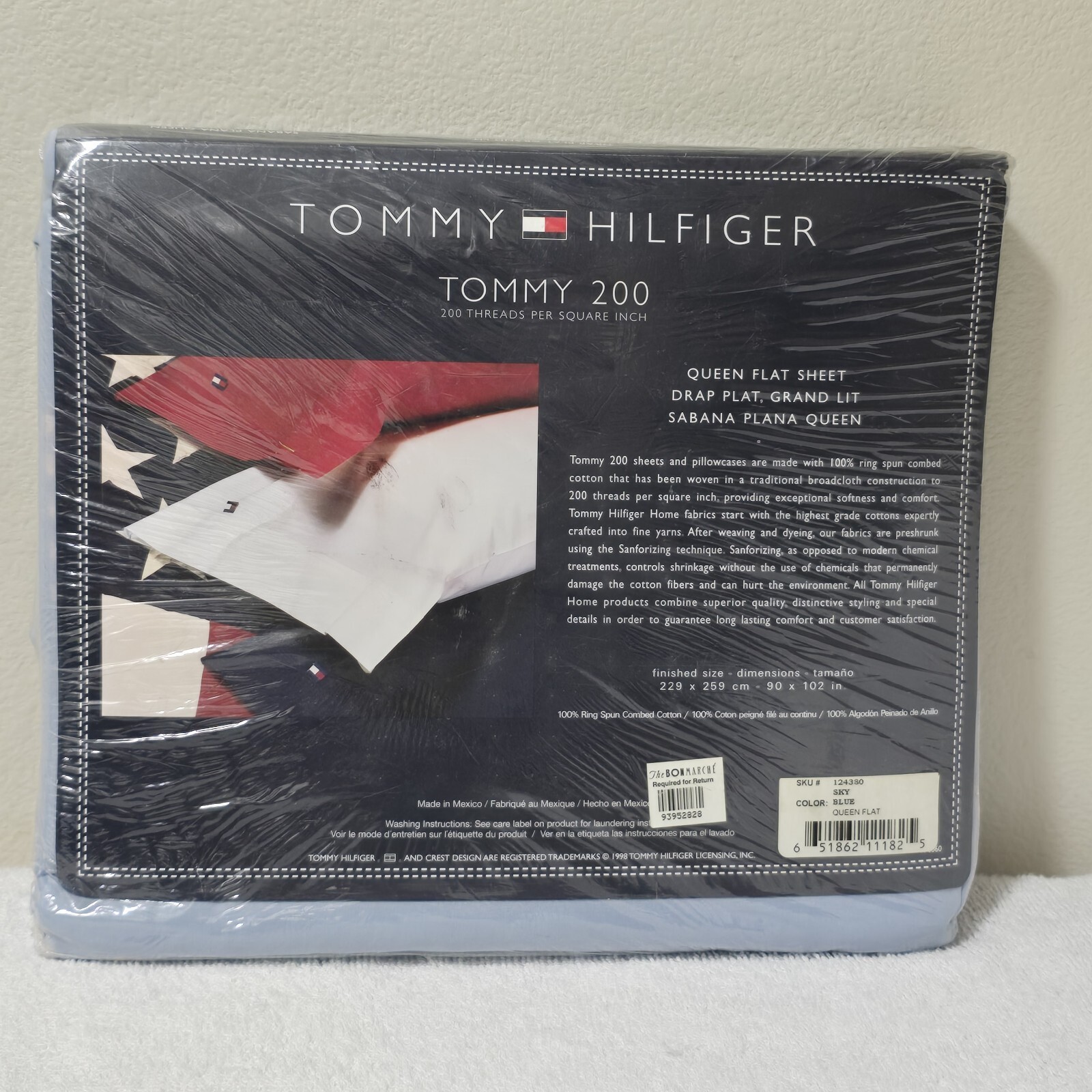 - Vintage 90s Tommy Hilfiger Sky Blue Queen Flat Sheet Cotton New