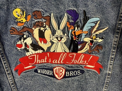 - Vintage 90s Warner Bros. Studio Looney Tunes That's All Folks Medium Jean Jacket