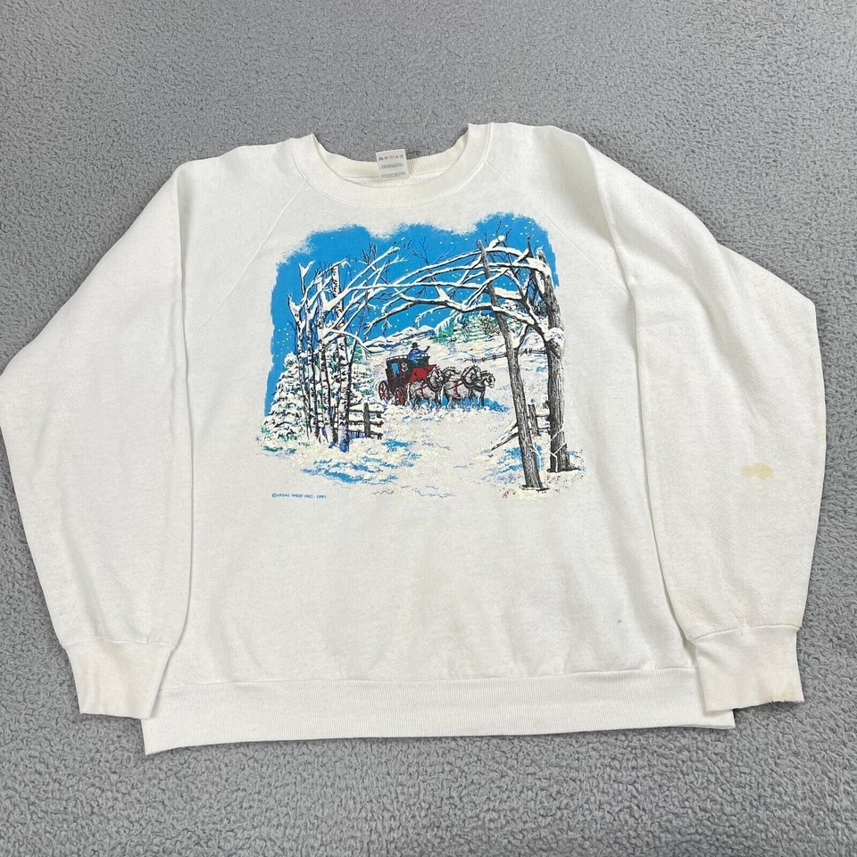 Vintage 90s Winter Scene Sweatshirt LESAL WEST Size Large Adult