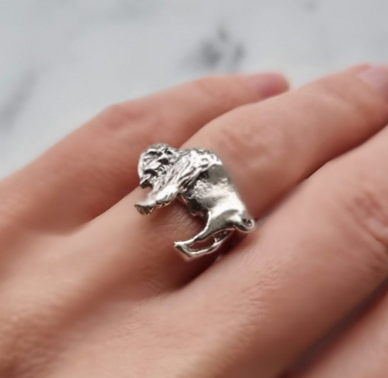 The product is a vintage 925 sterling silver American bison ring. This ring features a beautiful design with a bison motif, made from high-quality sterling silver. The absence of a main stone allows the intricate details of the animal theme to shine through, making it a unique and unique piece of fine jewelry that would be a perfect addition to any jewelry collection.