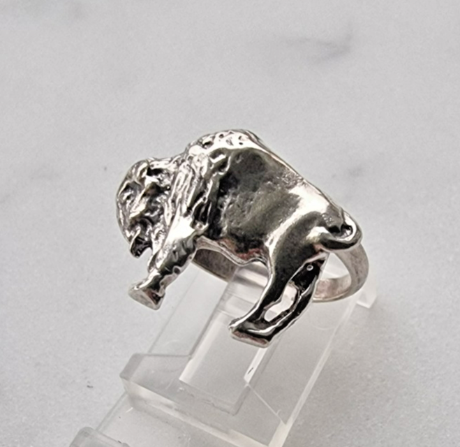 - VINTAGE 925 STERLING SILVER AMERICAN BISON RING SIZE 6