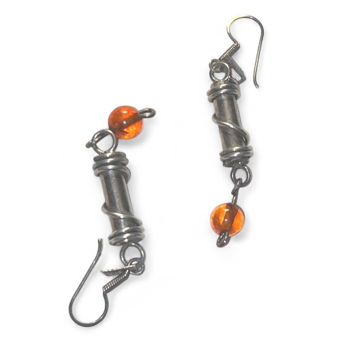 Vintage .925 Sterling Silver Dangle Post Earrings With Amber Bead?