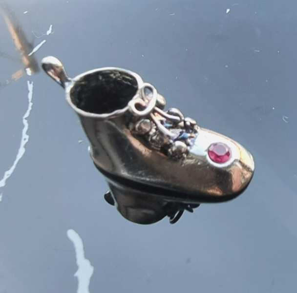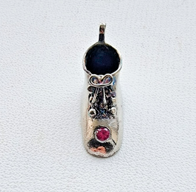 - VINTAGE 925 STERLING SILVER MAN MADE PINK RUBY SHOE CHARM PENDANT