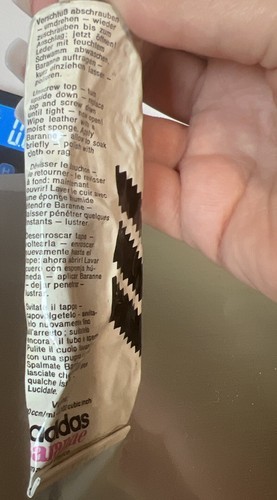 Offering a vintage tube of shoe polish made by Adidas in France.