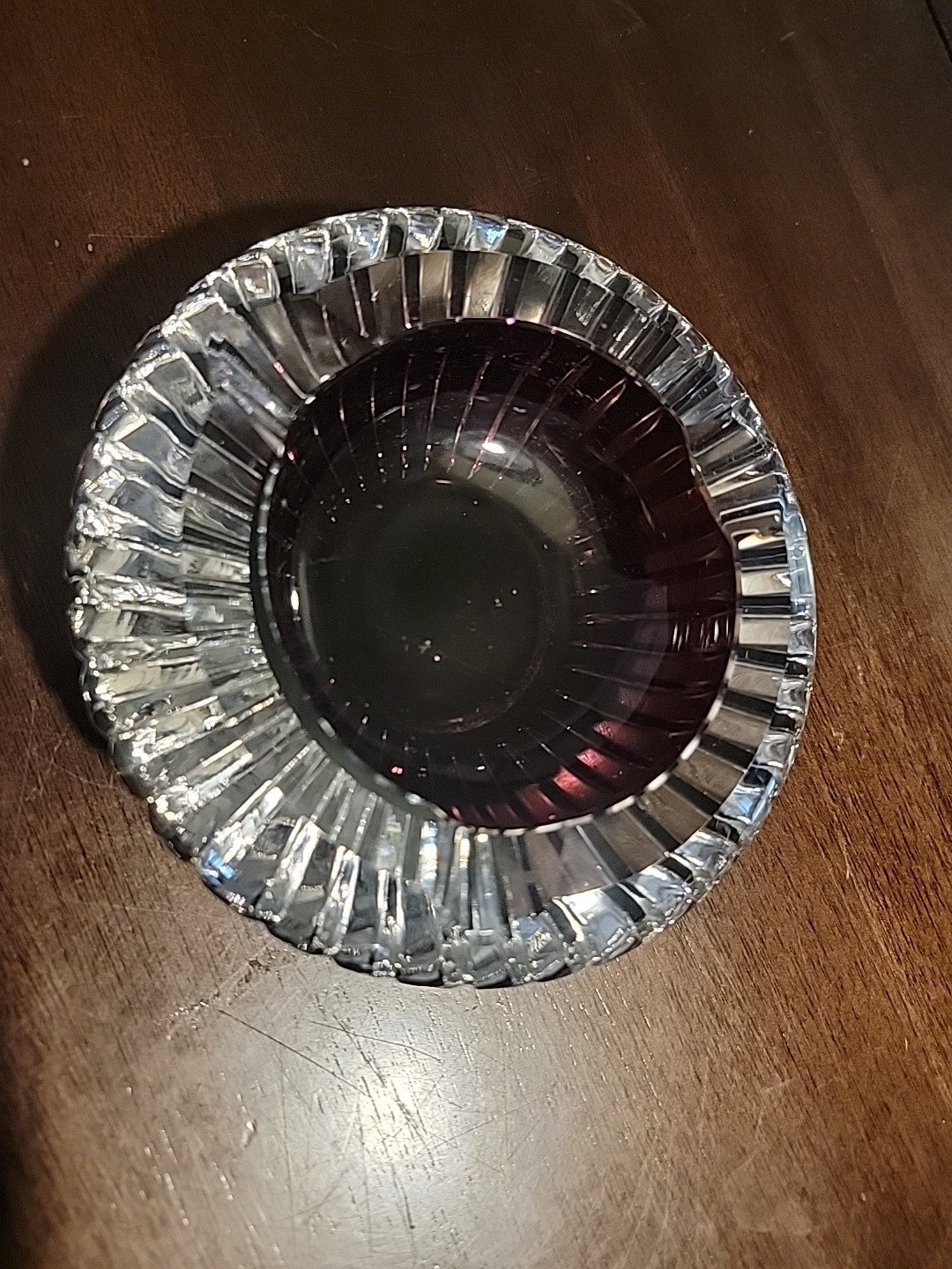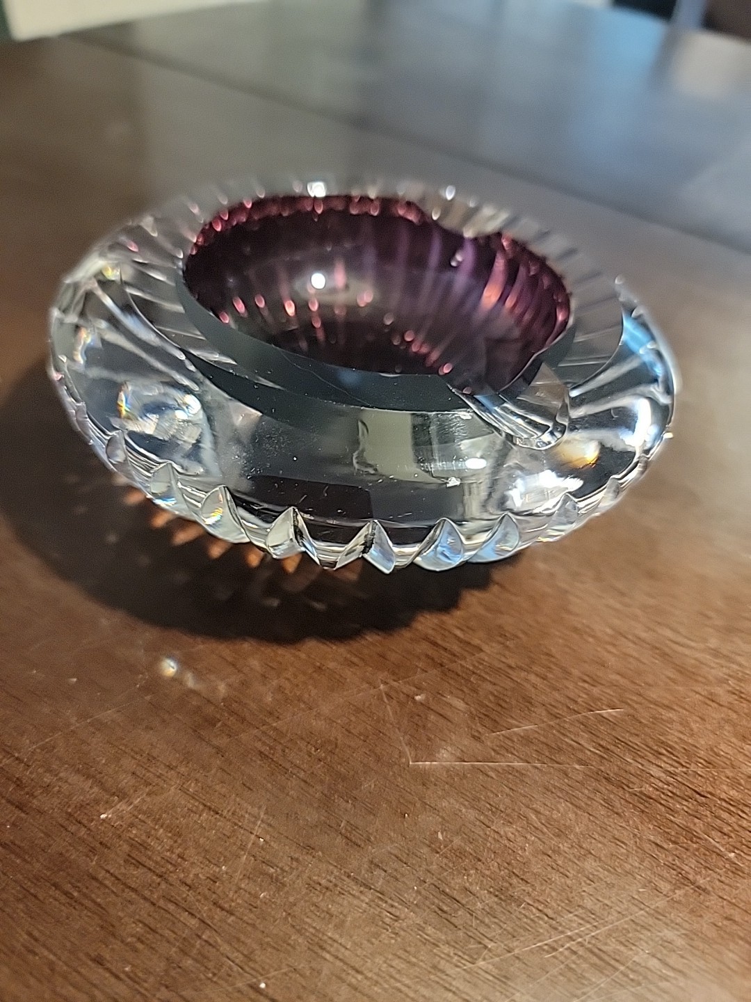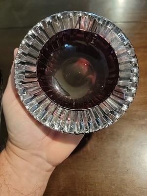 - Vintage AMETHYST Center to Clear Crystal Glass Ashtray Heavy