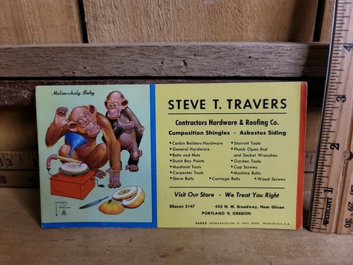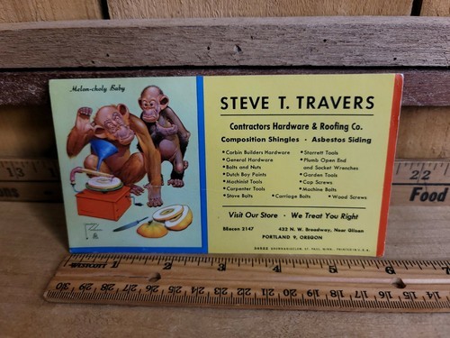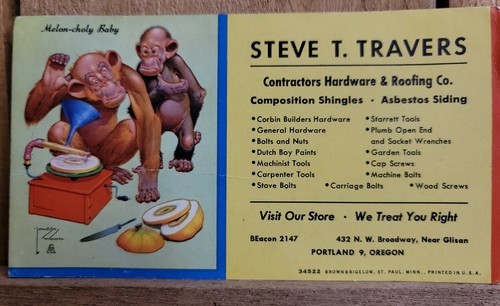- Vintage Ad Card STEVE T. TRAVERS Portland, Oregon by ARTIST Lawson Wood MONKEY