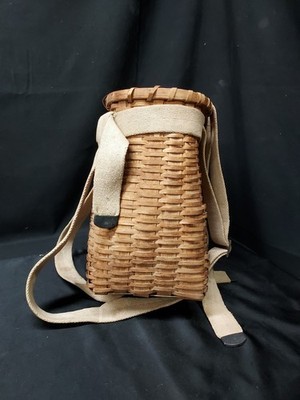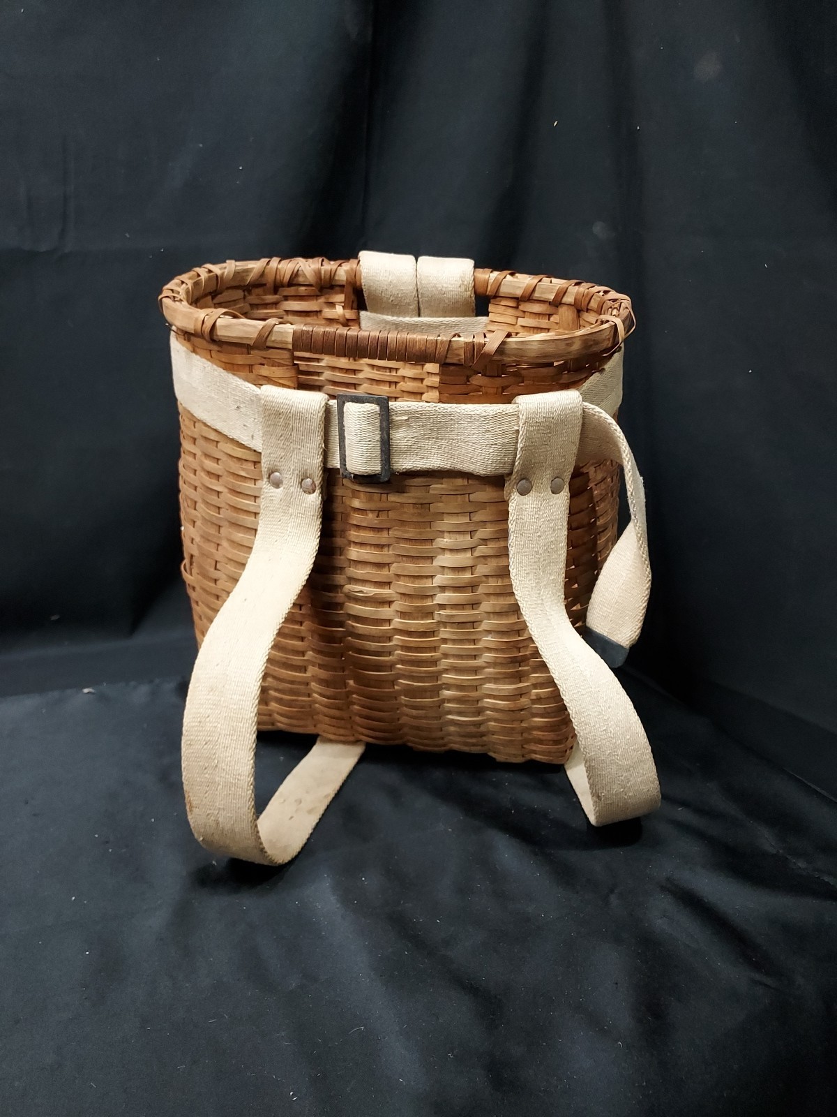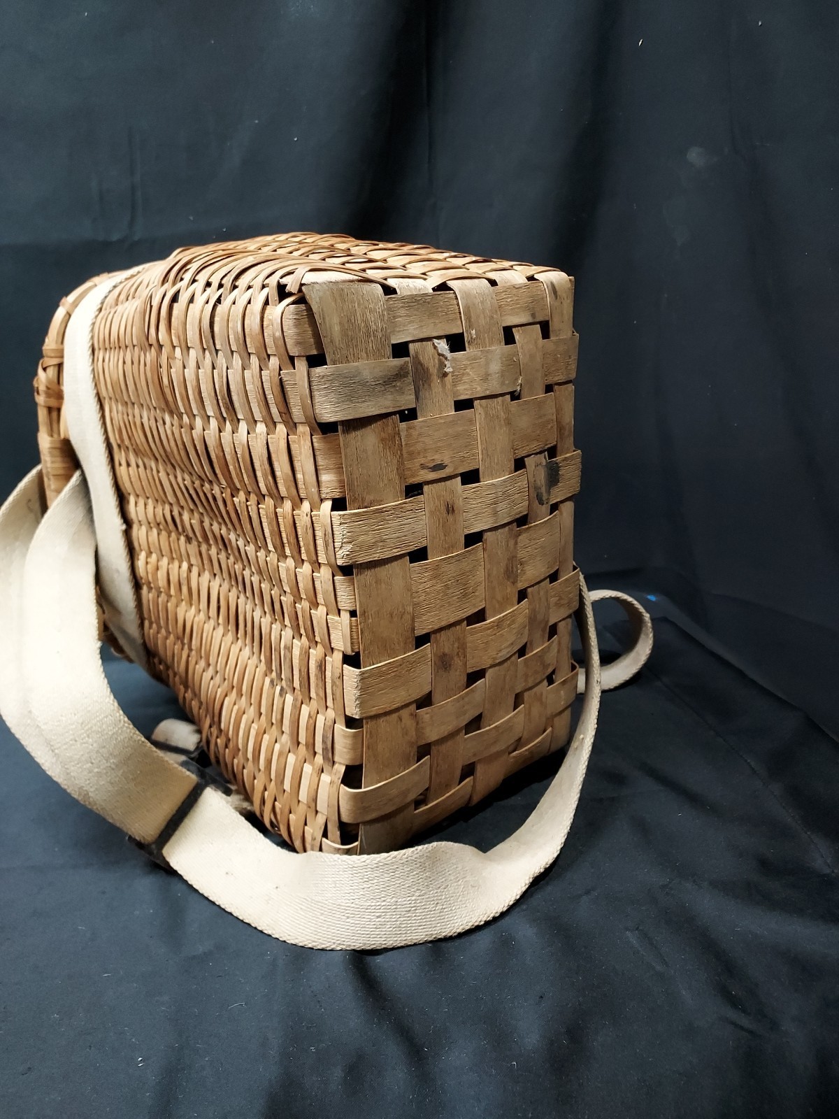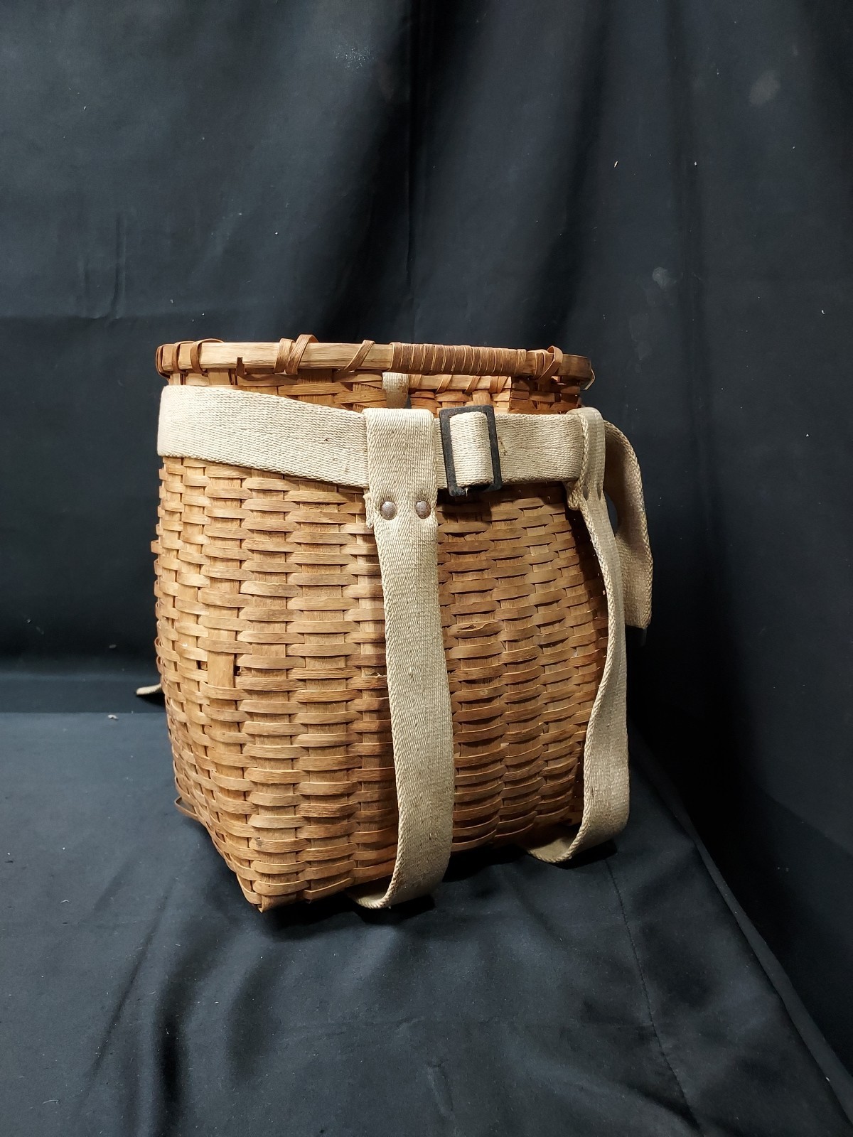 - Vintage Adirondack Woven Wood Splint Woodsman Trappers Pack Basket 14.5" Tall