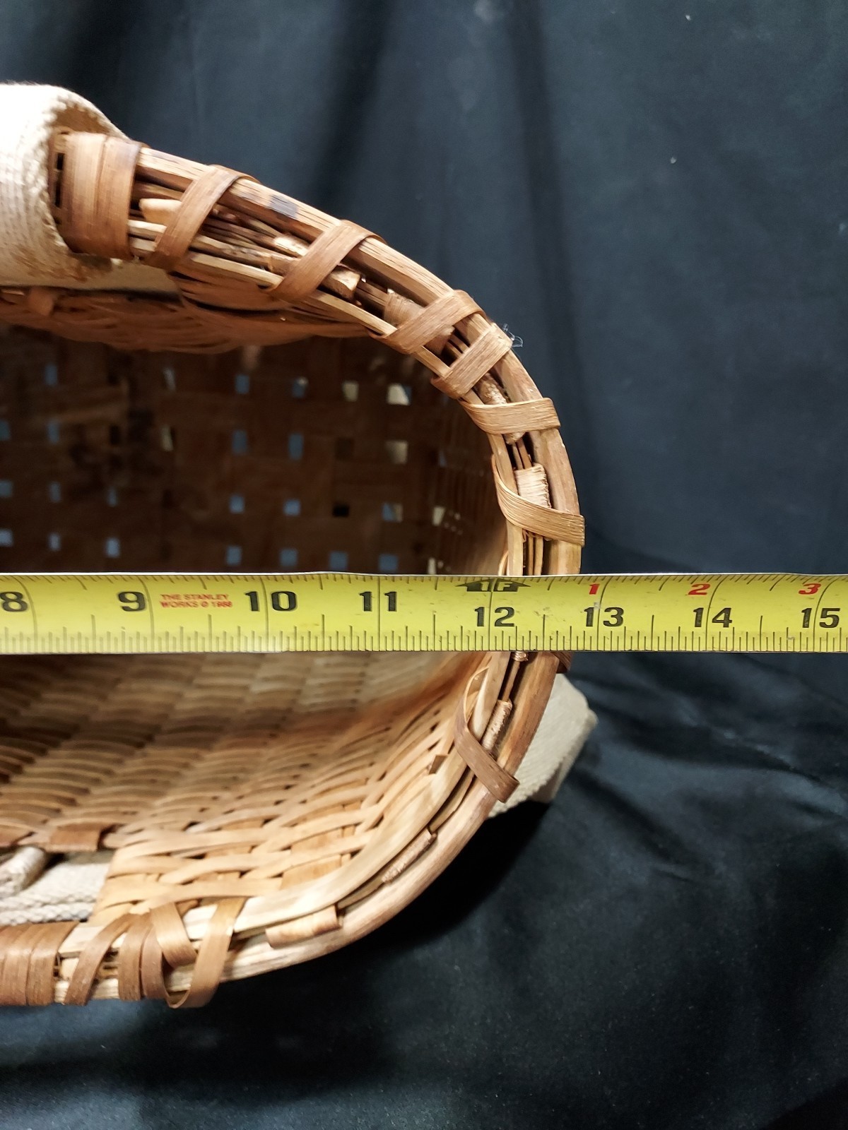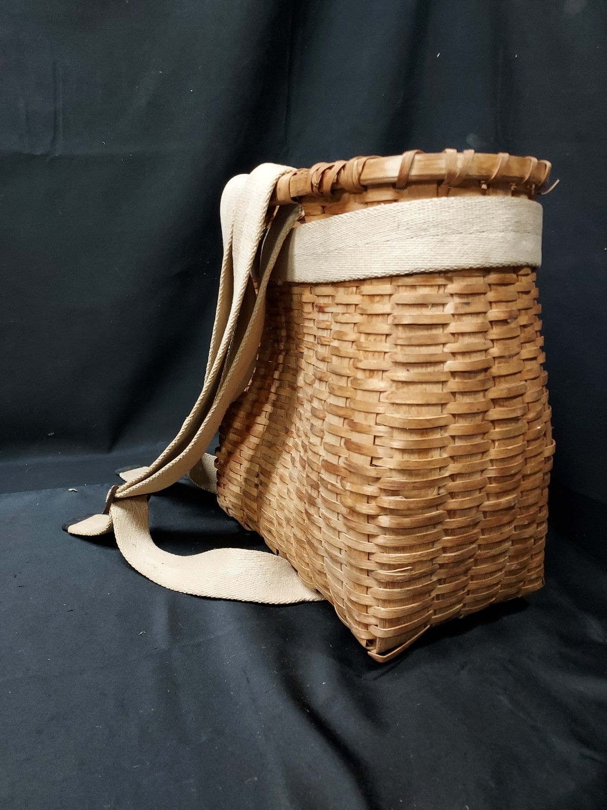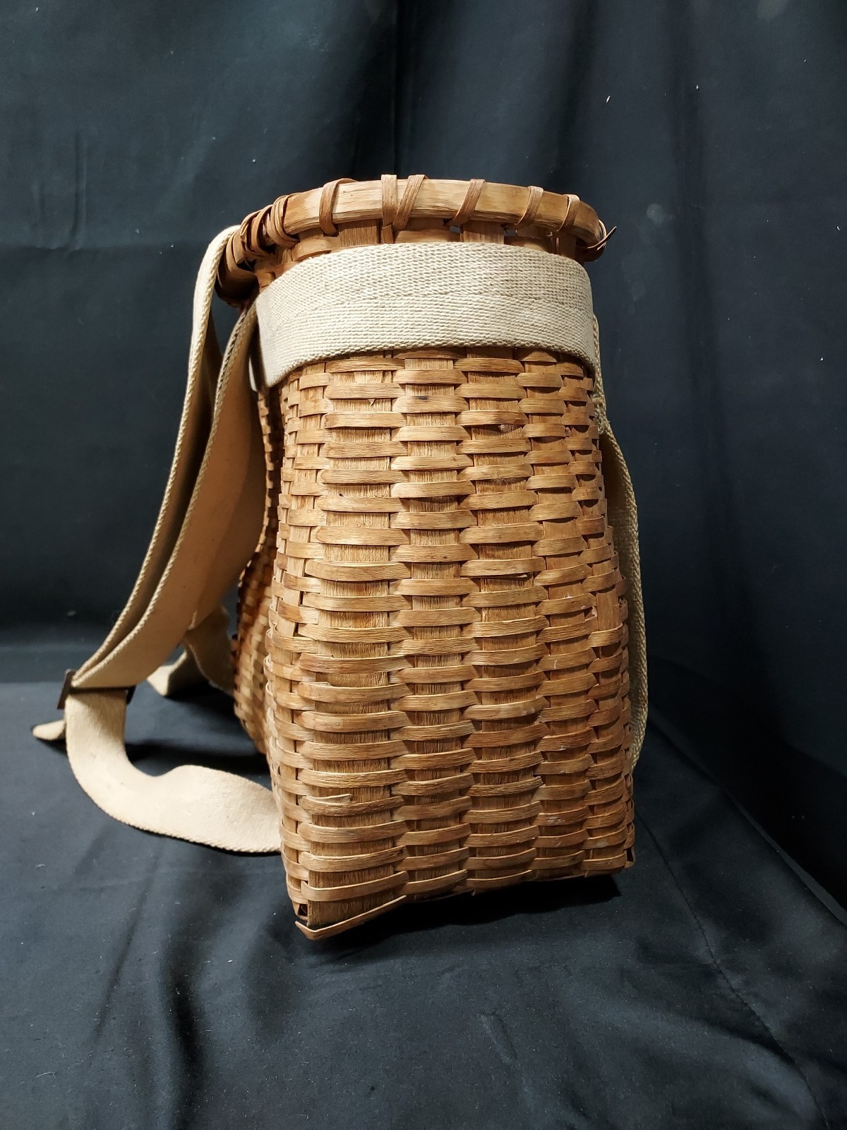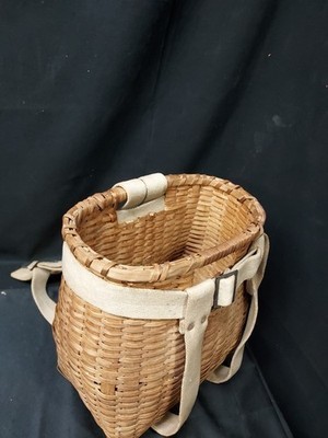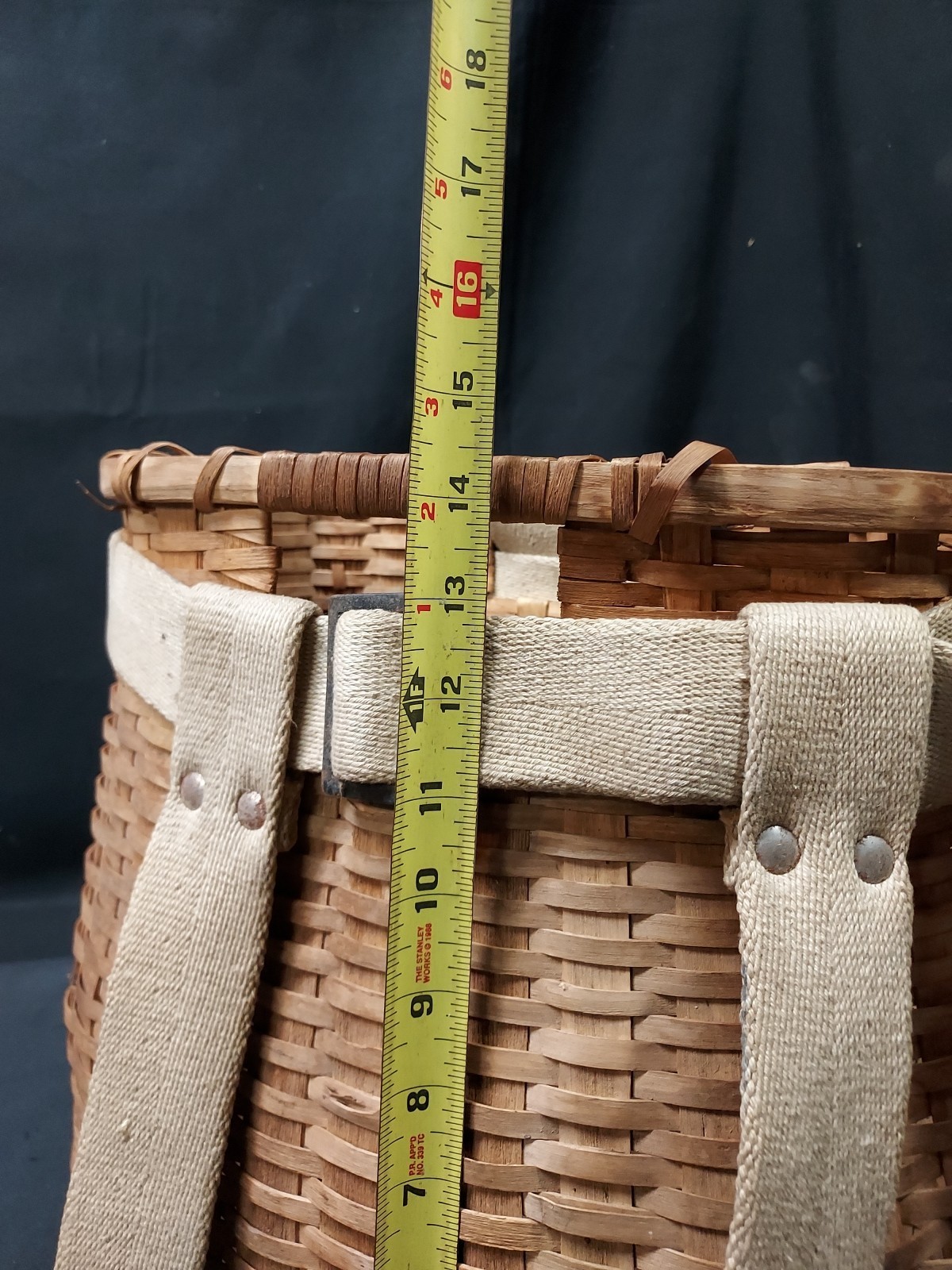- Vintage Adirondack Woven Wood Splint Woodsman Trappers Pack Basket 14.5" Tall