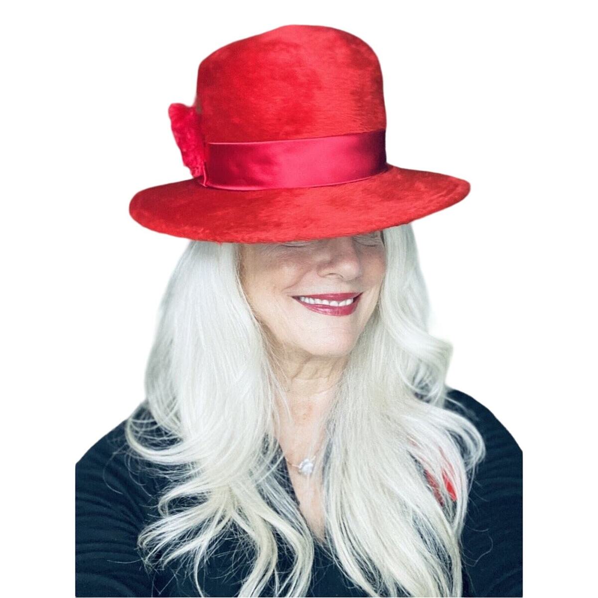 - Vintage Adolfo Realities Red Fur Felt Brimmed Hat Church 1960s Chinstrap 22'