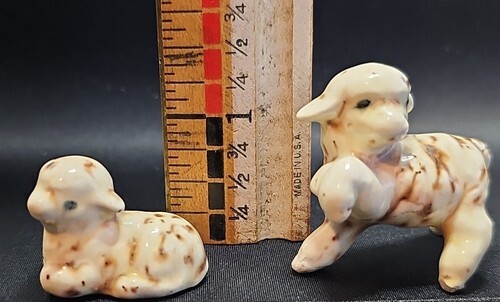 - Vintage Adorable Set of 2 Miniature Sheep Lambs Doll House Farmyard Animals
