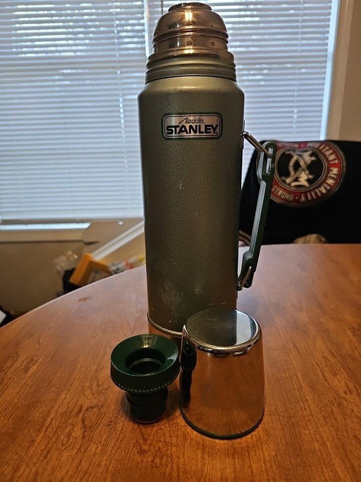 - Vintage Aladdin Stanley Vacuum Thermos 32 oz Quart Model A-944DH Green Silver